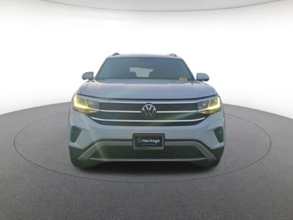 Balance of Factory Warranty, 2nd-Row Dual Captain's Chairs, 3.60 Axle Ratio, 3rd row seats: split-bench, 4-Wheel Disc Brakes, 6 Speakers, ABS brakes, Air Conditioning, Alloy wheels, AM/FM radio: SiriusXM with 360L, Auto-dimming Rear-View mirror, Automatic temperature control, Brake assist, Bumpers: body-color, Compass, Delay-off headlights, Driver door bin, Driver vanity mirror, Dual front impact airbags, Dual front side impact airbags, Electronic Stability Control, Emergency communication system: VW Car-Net Safe & Secure 5-year, Exterior Parking Camera Rear, First Aid Kit, Four wheel independent suspension, Front anti-roll bar, Front Bucket Seats, Front Center Armrest, Front dual zone A/C, Front fog lights, Front reading lights, Fully automatic headlights, Heated Comfort Front Bucket Seats, Heated door mirrors, Heated front seats, Illuminated entry, Leather Shift Knob, Low tire pressure warning, Occupant sensing airbag, Outside temperature display, Overhead airbag, Overhead console, Panic alarm, Passenger door bin, Passenger vanity mirror, Perforated V-Tex Leatherette Seating Surfaces, Power door mirrors, Power driver seat, Power Liftgate, Power steering, Power windows, Radio data system, Radio: MIB3 Composition Media w/8" Touchscreen, Rain sensing wipers, Rear air conditioning, Rear anti-roll bar, Rear reading lights, Rear seat center armrest, Rear window defroster, Rear window wiper, Remote keyless entry, Roadside Assistance Kit, Security system, Speed control, Speed-sensing steering, Split folding rear seat, Spoiler, Standard Suspension, Steering wheel mounted audio controls, Tachometer, Telescoping steering wheel, Tilt steering wheel, Traction control, Trip computer, Turn signal indicator mirrors, Variably intermittent wipers, VW Care, and Wheels: 20" x 8J 5-Spoke Silver Painted Alloy.